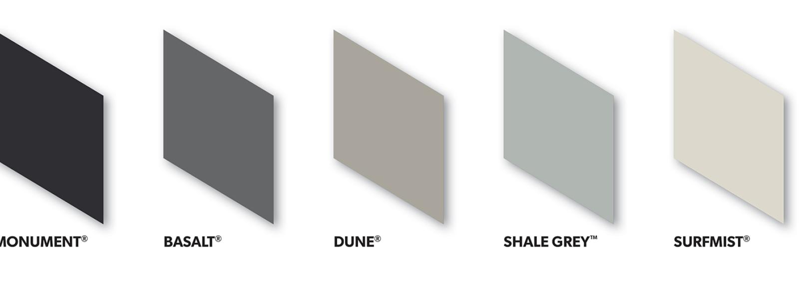 The COLORBOND® steel Matt range comprises five stylish colours - Monument®, Basalt®, Dune®, Shale Grey™ and Surfmist® - and will be available in a range of LYSAGHT® residential and commercial, and architectural profiles, in addition to selected guttering, fascia & flashing products.