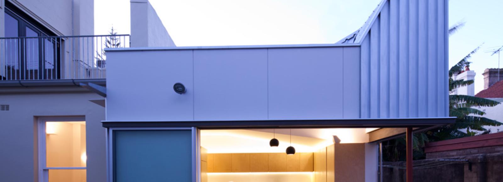 The new roof was constructed with LYSAGHT LONGLINE 305® profile made from ZINCALUME® steel, which was also used as feature wall cladding to emphasise the vertical scale on the new double-height kitchen volume, as well as for the new gutters and downpipes.