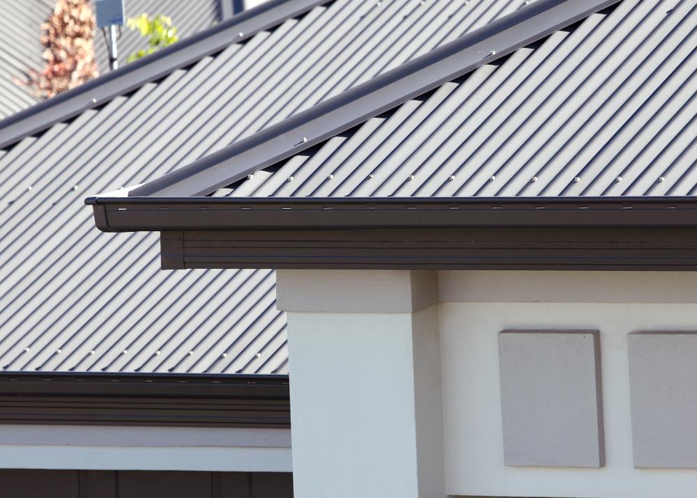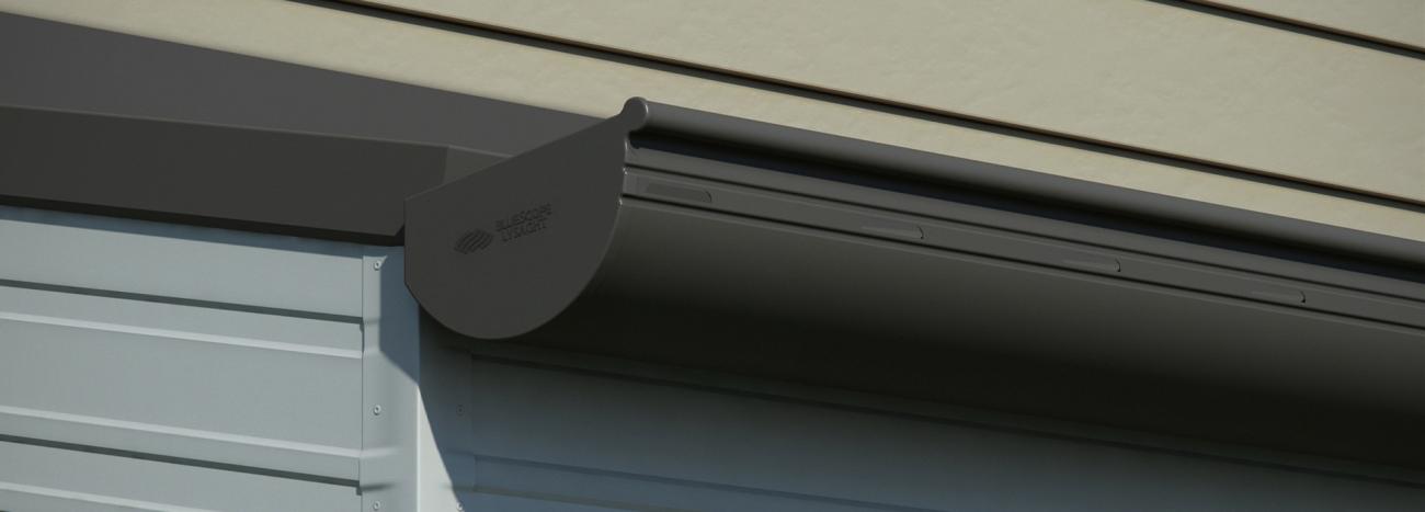 Detailed close-up of a new gutter system with the BlueScope Lysaght logo, illustrating a high-quality gutter replacement.