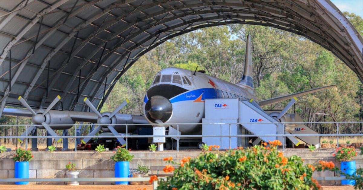 The hangar has found a home at Possum Park, a tourist accommodation complex near Miles, 340 km west of Brisbane, where it will provide protection for a painstakingly restored 50s-era TAA Vickers Viscount 756 passenger aircraft.