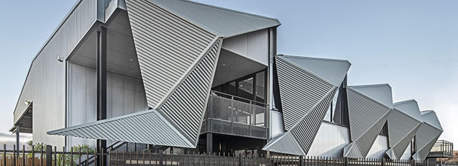 To address this issue, the architects included large sunhoods, which are designed to block out 99 per cent of sunlight, in the design. Clad in LYSAGHT CUSTOM ORB® wall cladding, these angular wing-like structures look right at home in this industrial context. The subtle fluting of the cladding is particularly effective.