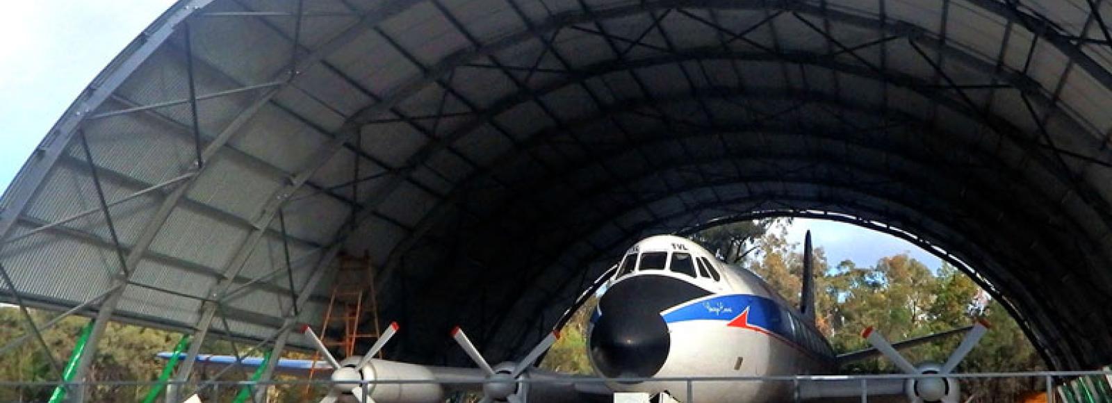 The hangar has found a home at Possum Park, a tourist accommodation complex near Miles, 340 km west of Brisbane, where it will provide protection for a painstakingly restored 50s-era TAA Vickers Viscount 756 passenger aircraft.